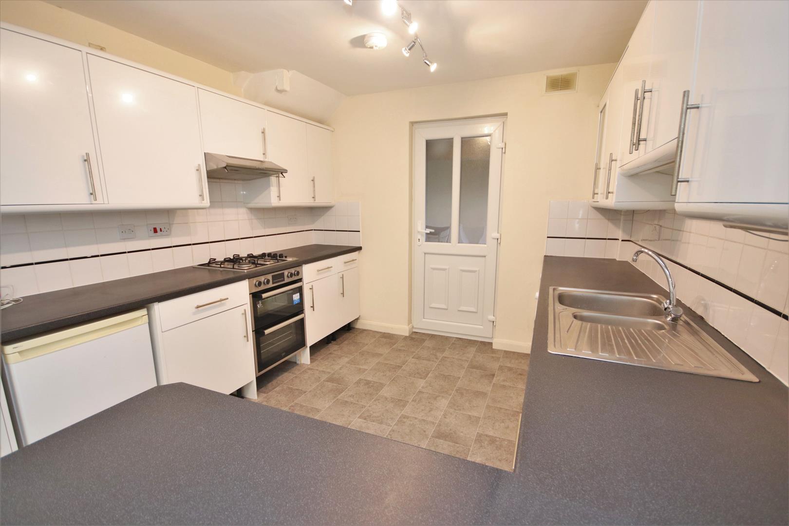 Open plan kitchen/dining room with doors to large rear garden. The kitchen is equipped with with gas hob and electric oven, dishwasher, fridge and freezer