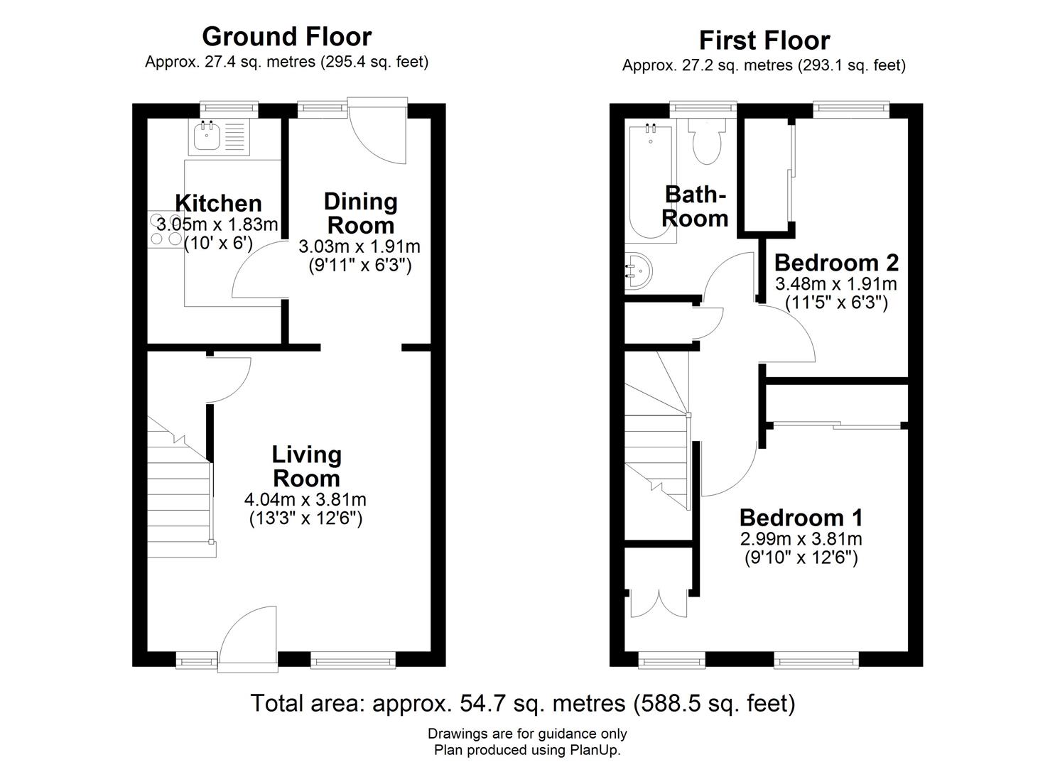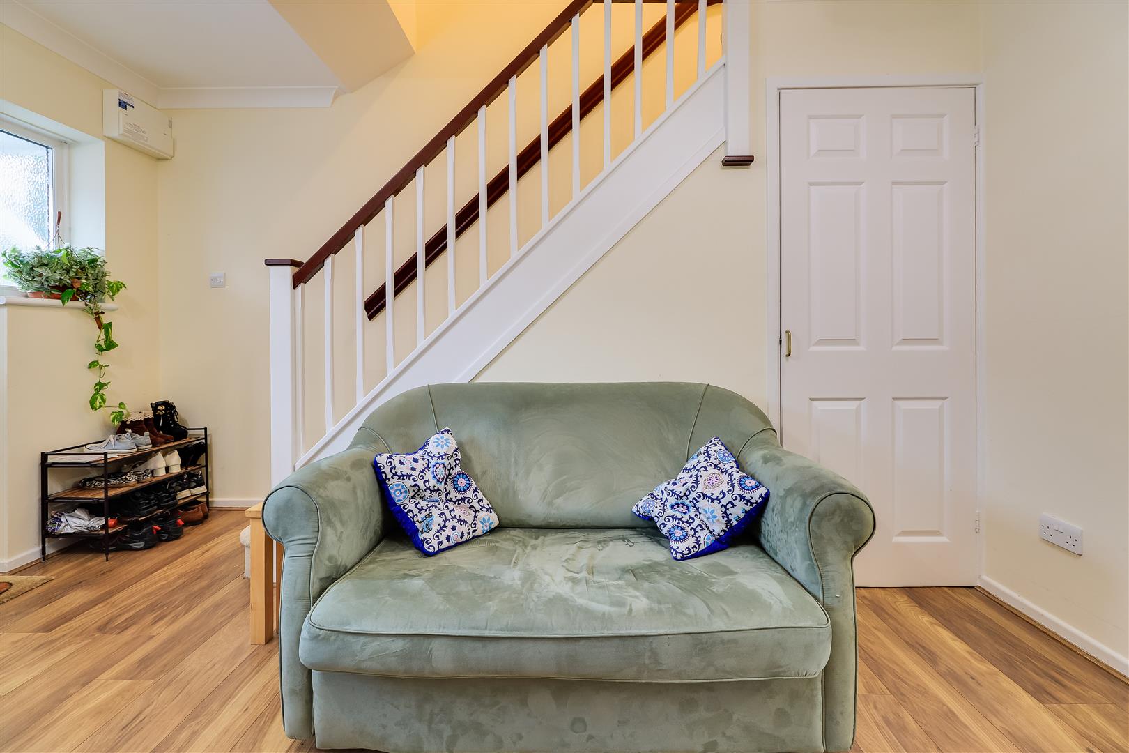 Ground floor, UPVC double-glazed door with stained glass details. Sitting/ dining with laminated flooring, stairs to the first floor and under stairs cupboard, single door leads to the rear garden and radiators. Kitchen with a sink unit with a matching range of base and wall units, gas and electric cooker points, plumbing for dishwasher, washing machine, fridge and freezer space. Double-glazed window overlooking the rear garden and radiator. First floor landing with access to the loft space with ladder and electric light. Cupboard with a hot water tank and immersion. Bedroom 1 with a range of fitted wardrobes and storage cupboards, 2 double-glazed windows to the front elevation. Bedroom 2 has a double-glazed window overlooking the rear garden and a radiator. The bathroom is a modern suite including a panel bath with power shower, vanity, hand basin, WC, double-glazed window and towel rail.