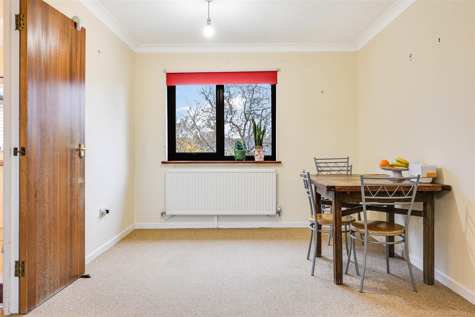 Accommodation in detail, secure communal entrance hall with stairs to the second floor. Timber front door to the entrance hall with 2 storage cupboards and a radiator. Sitting/ dining room with large, double-glazed windows with a dual aspect, and radiators. Kitchen with sink unit and range of wall and base units, electric cooker point and extractor, gas-fired boiler serving hot water and central heating, fridge space and plumbing for washing machine. 2 bedrooms with double-glazed windows and radiators. Bathroom with panel bath with shower over, hand basin, WC, tiled surrounds and radiator.