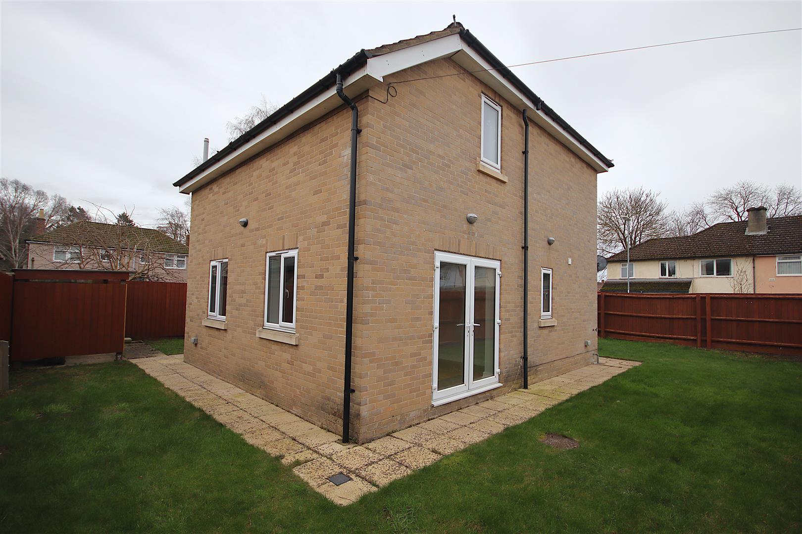 Enclosed front and rear gardens, mostly laid to lawn with covered bike storage and driveway parking available for two cars