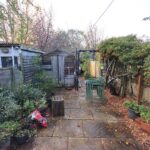Rear paved garden with shed and rear access