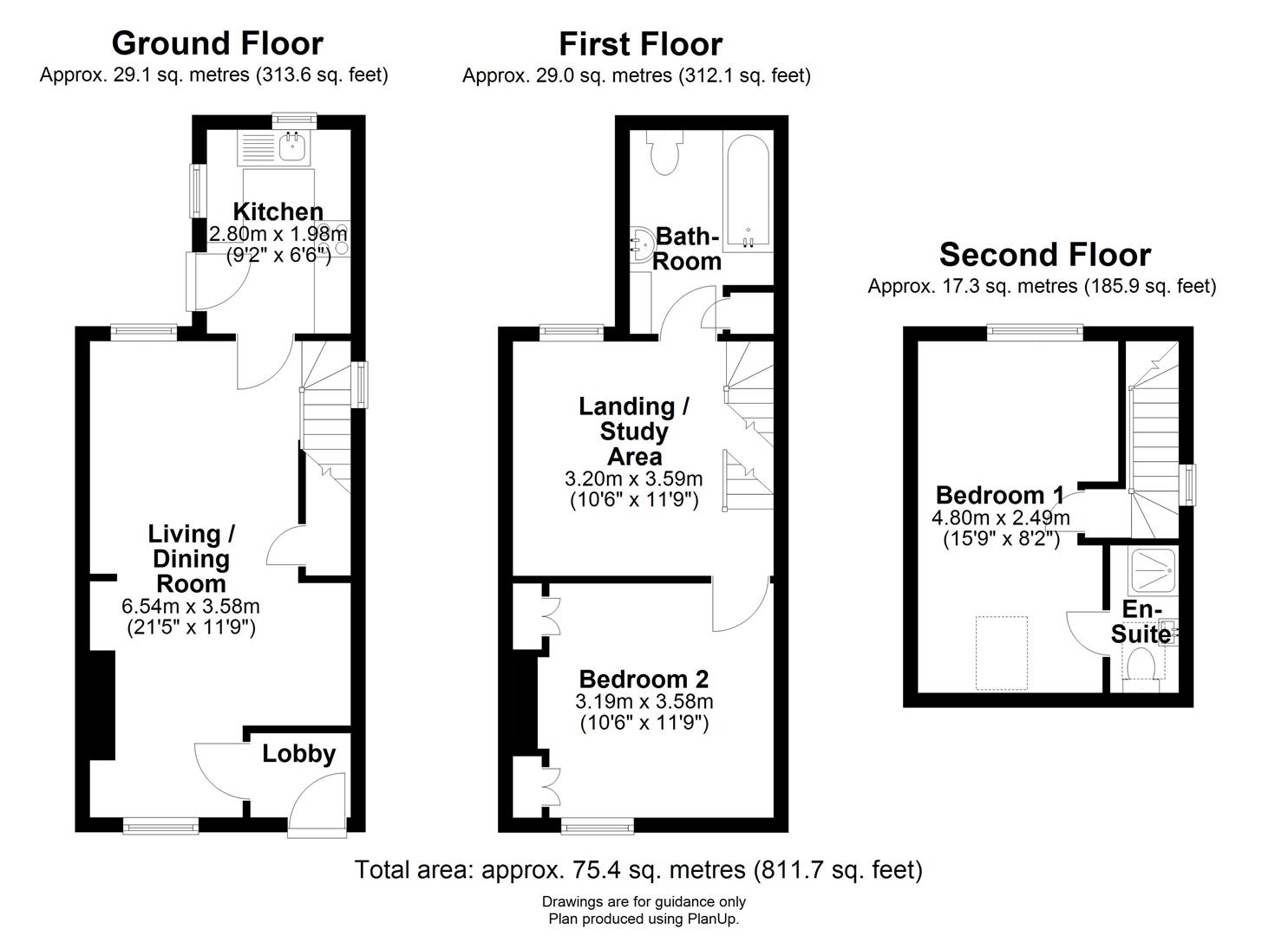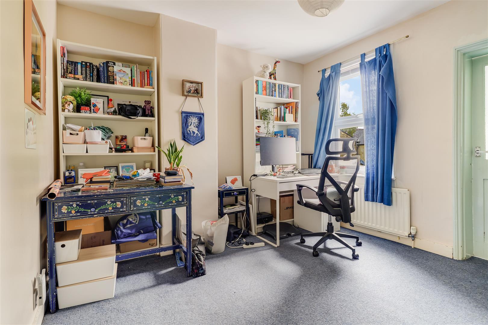 The first-floor accommodation has a large study/landing area, which could easily create a third bedroom with the simple addition of a stud wall and has stairs rising to the second floor. Bedroom 2 is a double located to the front of the property, with exposed original floorboards, 2 built-in wardrobes. The bathroom has a bath with a shower over, WC, hand-wash basin, and storage cupboard.