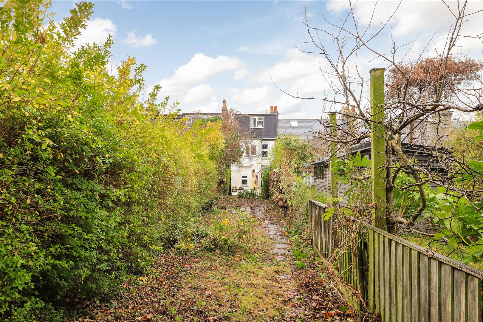 Outside, there is a large rear garden with a covered lean-to, patio area, and side access behind a secure wooden gate leading back to Sturton Street.
