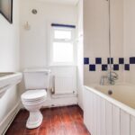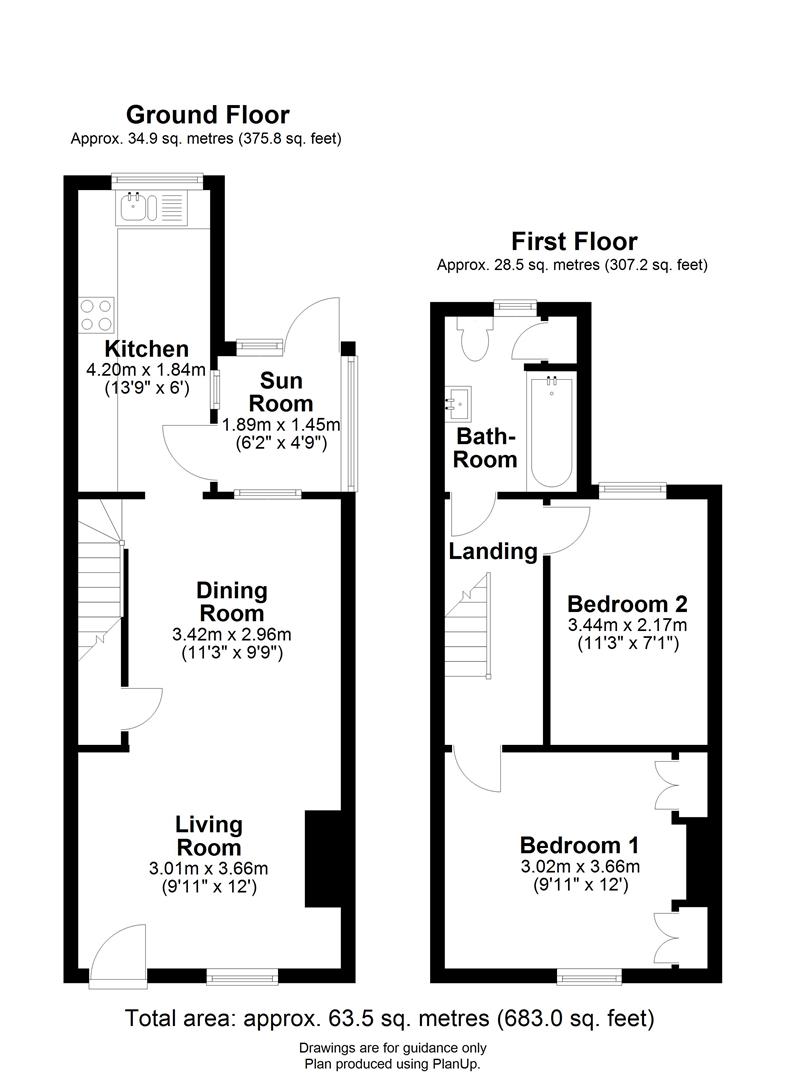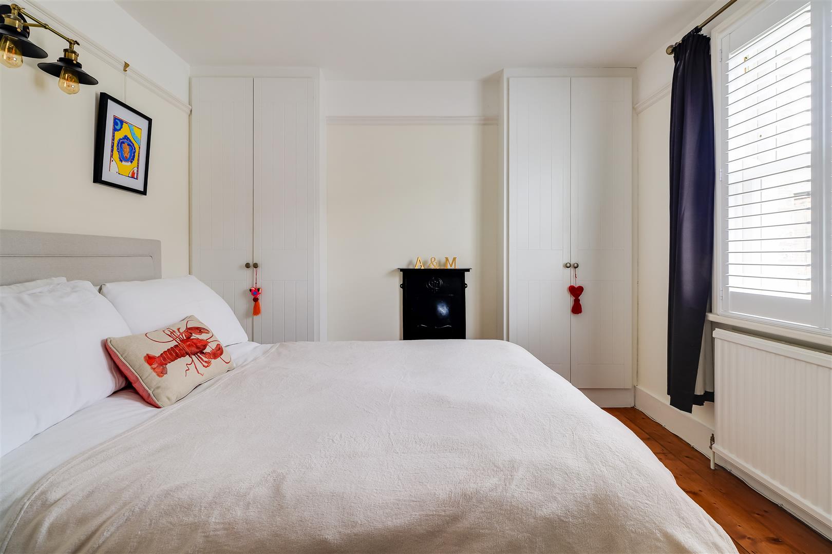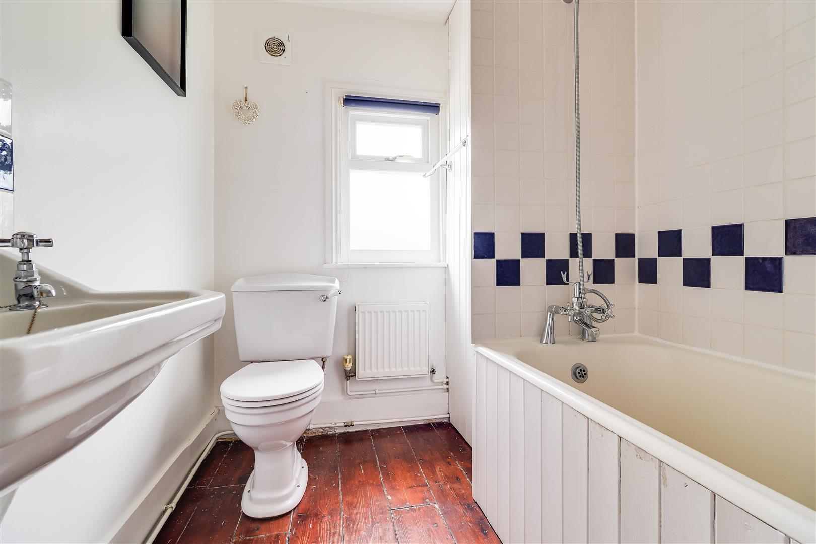 The first-floor accommodation has 2 bedrooms and a bathroom, all accessed off a central landing with access to the loft space. Bedroom 1 is a double and spans the width of the property with built-in wardrobes, a cast iron fireplace and stripped original floorboards. Bedroom 2 again is a double with stripped original floorboards and a window to the rear aspect. The bathroom has a bath with a shower over, WC and wash hand basin.