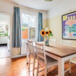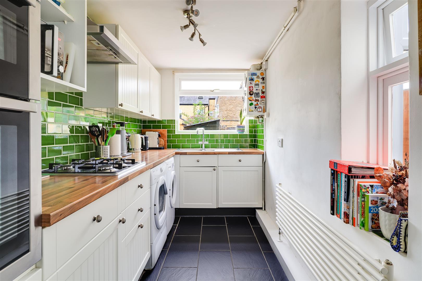 In brief, the accommodation consists of: a light and airy open-plan living / dining room, with a feature cast iron fireplace, bespoke cupboards with shelving above, original stripped flooring, dual aspect windows, stairs to the first floor off the dining room and under stair storage. The kitchen is modern in design, with a range of matching cabinets and drawers, ample work surfaces, an integrated Neff double oven, an integrated Neff fridge freezer, an integrated dishwasher, a 4-ring Neff hob with extractor above, finished with stylish tiling. Off the kitchen is the sun room, with a glazed door leading to the garden.