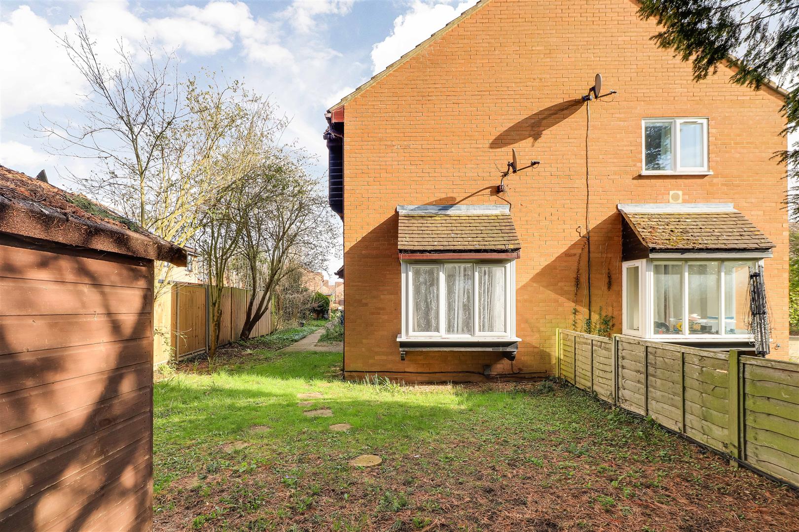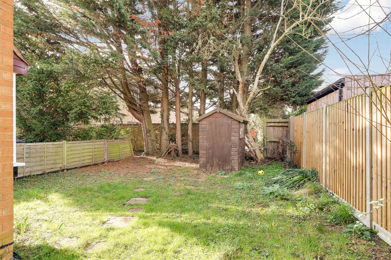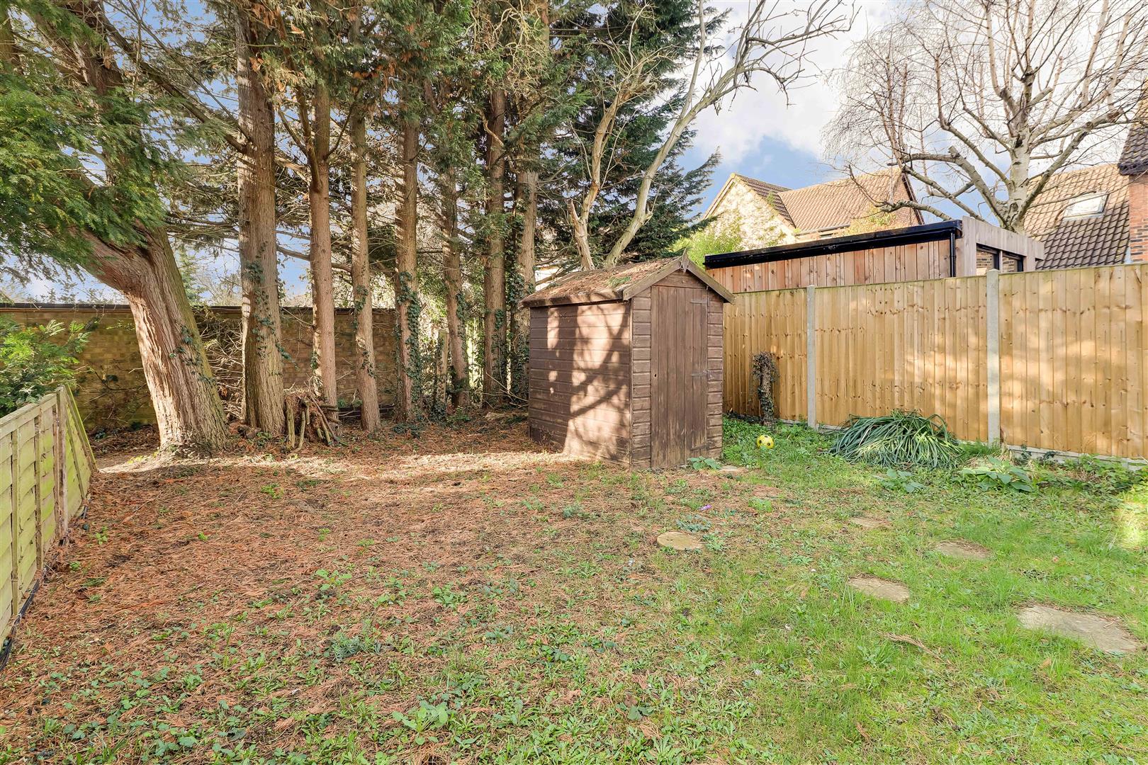 Outside - There is a private lawned garden with timber shed.