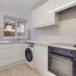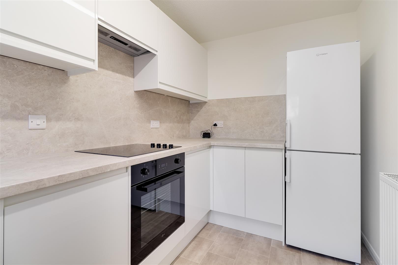 The newly re-fitted kitchen comprises a modern range of wall and base units and work surfaces with integrated electric oven, hob and extractor. There is plumbing for a washing machine and space for a fridge freezer.