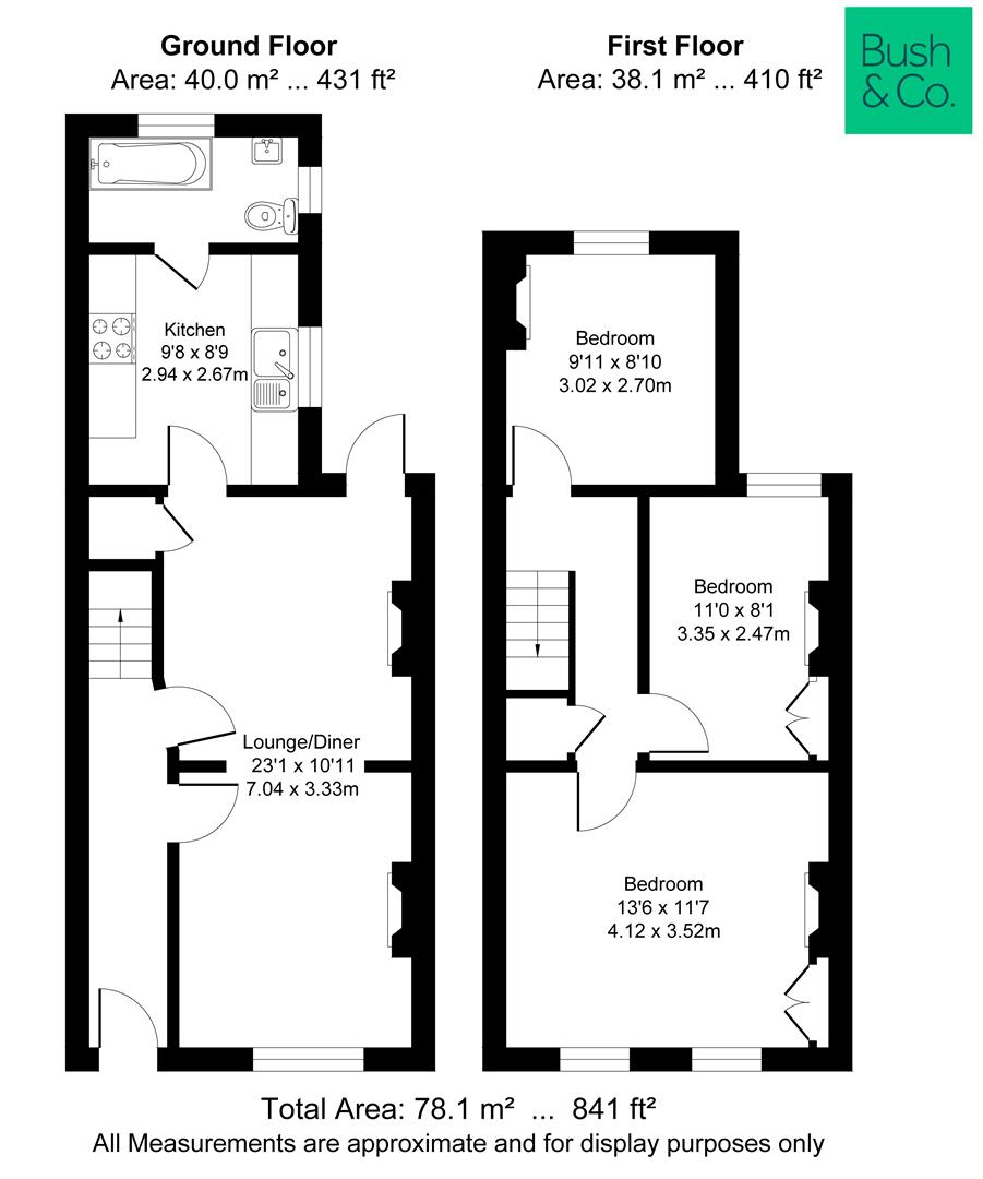 Bedroom 1 4.12 x 3.52 (13'6" x 11'6")