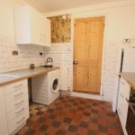 Fitted kitchen with fridge freezer, gas hob with electric oven and washing machine