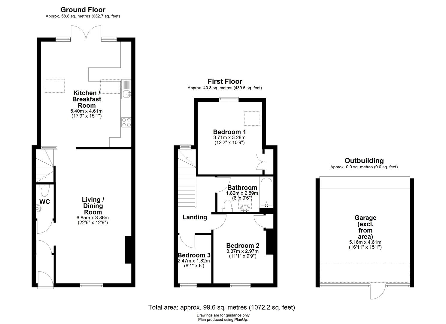 The first floor landing has a loft hatch with pull down ladder to a boarded loft space with rooflights. The principal bedroom sits quietly at the back and is a large double room with vaulted ceiling, rooflight and built in wardrobe. Bedroom two is another generous double room, at the front, with a built in wardrobe and bedroom three is a single room, also at the front. The bathroom features a three piece suite with shower over the bath and there is a rooflight providing natural light.
