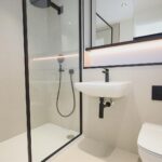 The apartments are built with high level of energy efficiency and have underfloor heating and triple glazing throughout. There is lift and stairs access to all floors, a fully furnished co-working space with a selection of open and private working areas on the ground floor of the building, peaceful communal garden, cycle storage and secure basement parking space for one car with electric car charging points.