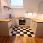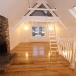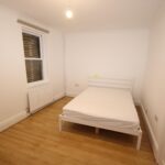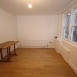 Rear ground floor double bedroom with wood flooring and built in wardrobe