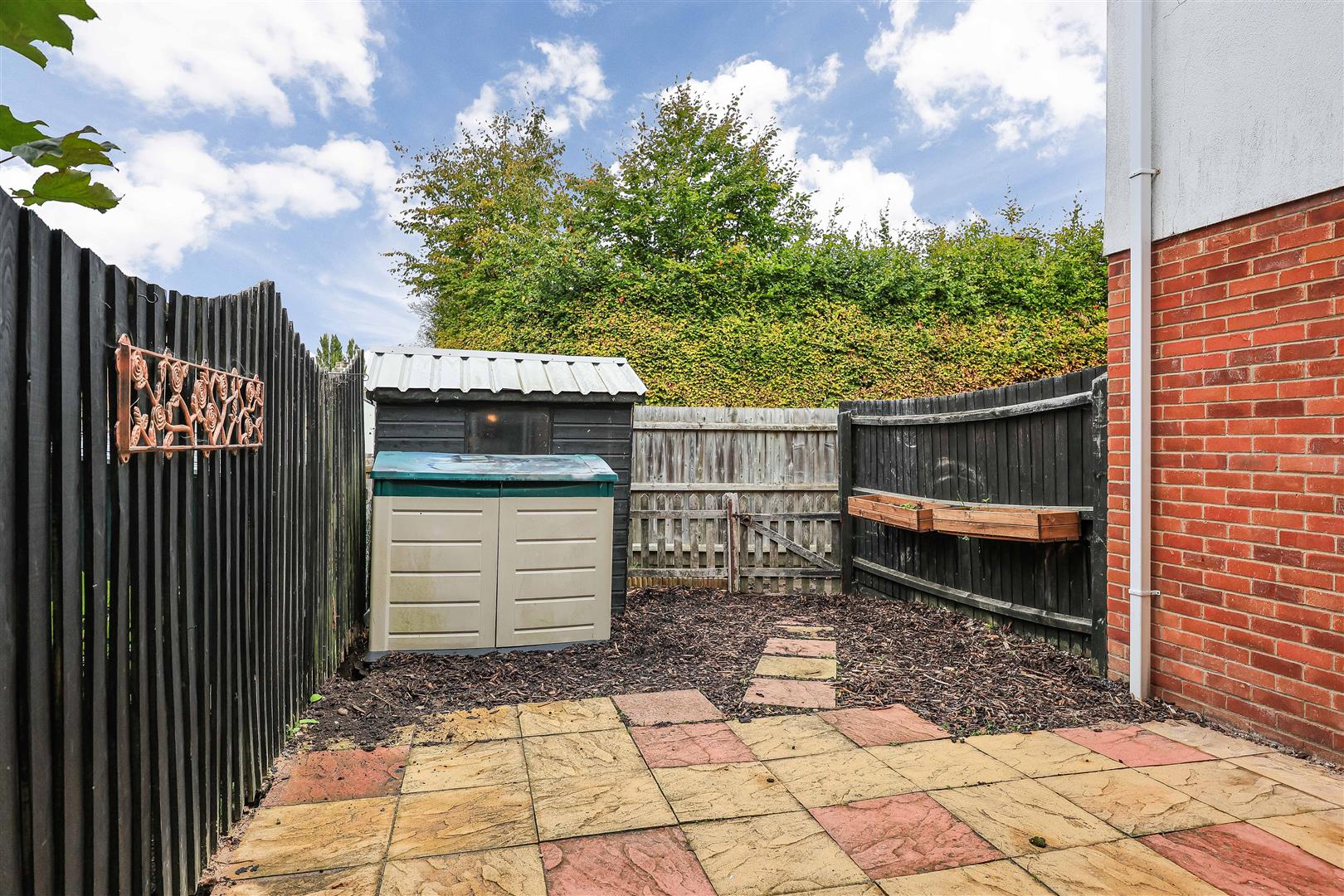 Outside, is a shallow front garden, to the rear is an enclosed garden shed and rear pedestrian access. 2 allocated parking spaces are close by.
