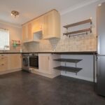 Modern fitted kitchen/diner with electric hob and oven, fridge freezer, washing machine and slimline dishwasher