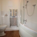 First floor bathroom with shower over bath, heated towel rail, WC and hand basin
