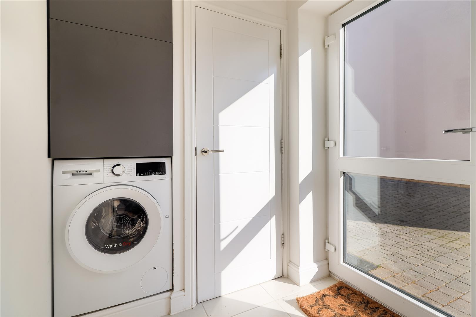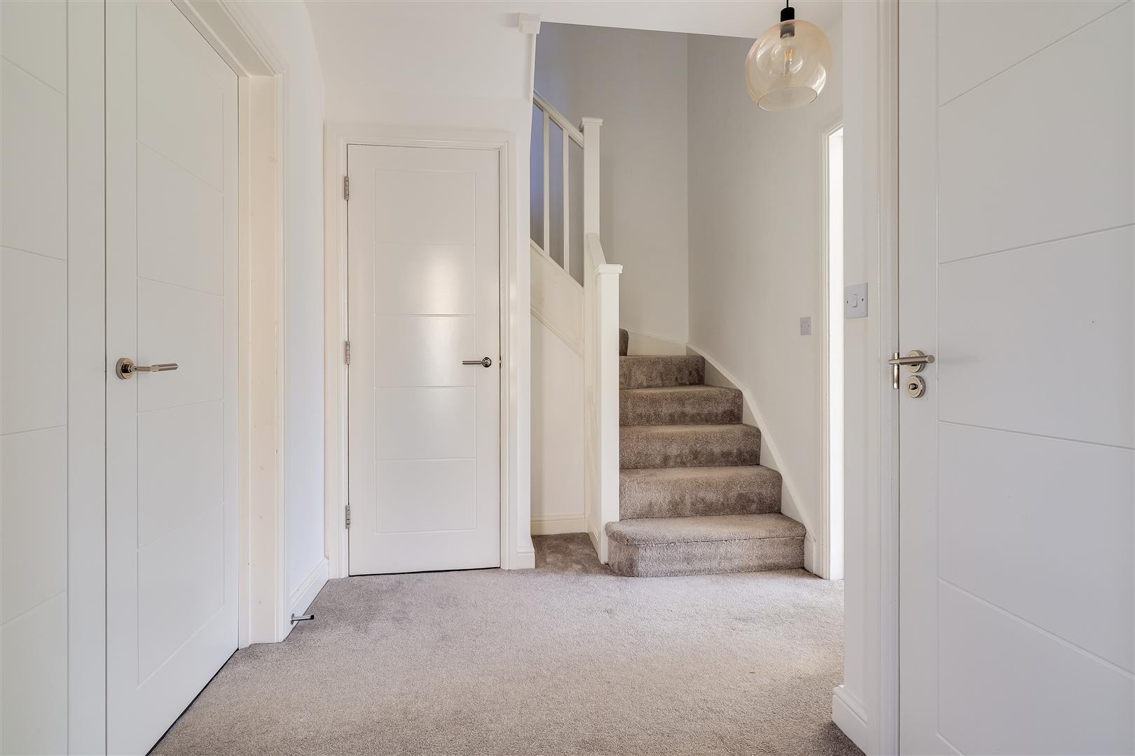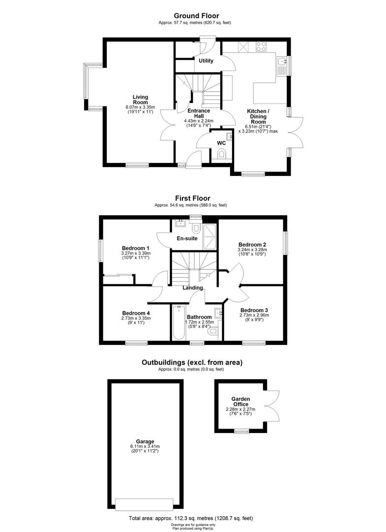 Accommodation in detail, Front door with glazed panel to the entrance hall with stairs to the first floor, storage cupboard, sitting room with bay window to front elevation, side window. Kitchen/ dining room with double-glazed French door to the rear garden, fitted with a sink unit and a range of wall and base units, dishwasher, fridge/ freezer, electric hob and oven, under-unit lighting, tiled flooring, extractor fan. Utility with plumbing for washing machine, storage and hot water tank, double-glazed to the driveway. First flooring landing bedroom 1 with fitted wardrobes and radiator, ensuite shower room with shower cubicle, hand basin, WC, window and towel rail. 3 further bedrooms with radiators. Family bathroom with panel bath and shower over, hand basin, WC, window and towel rail.