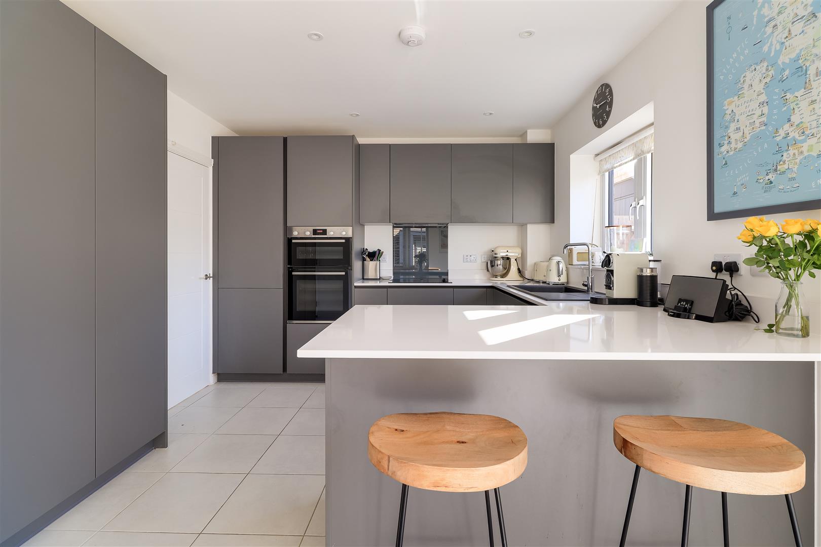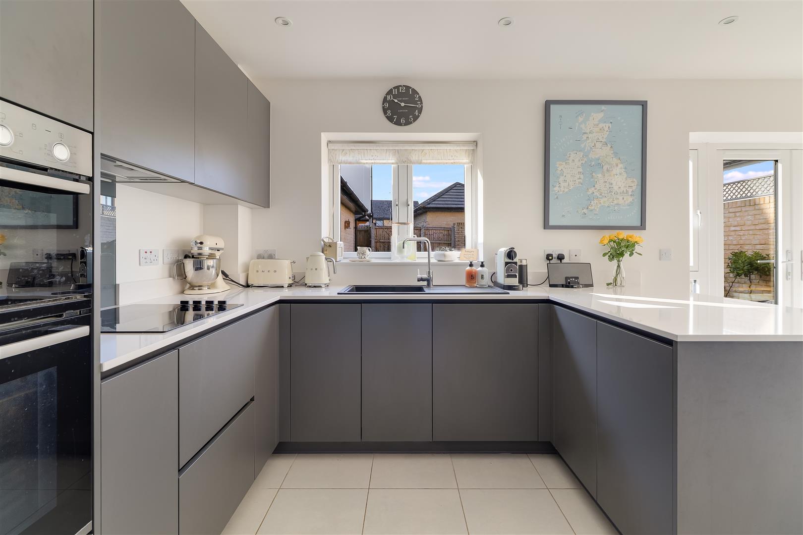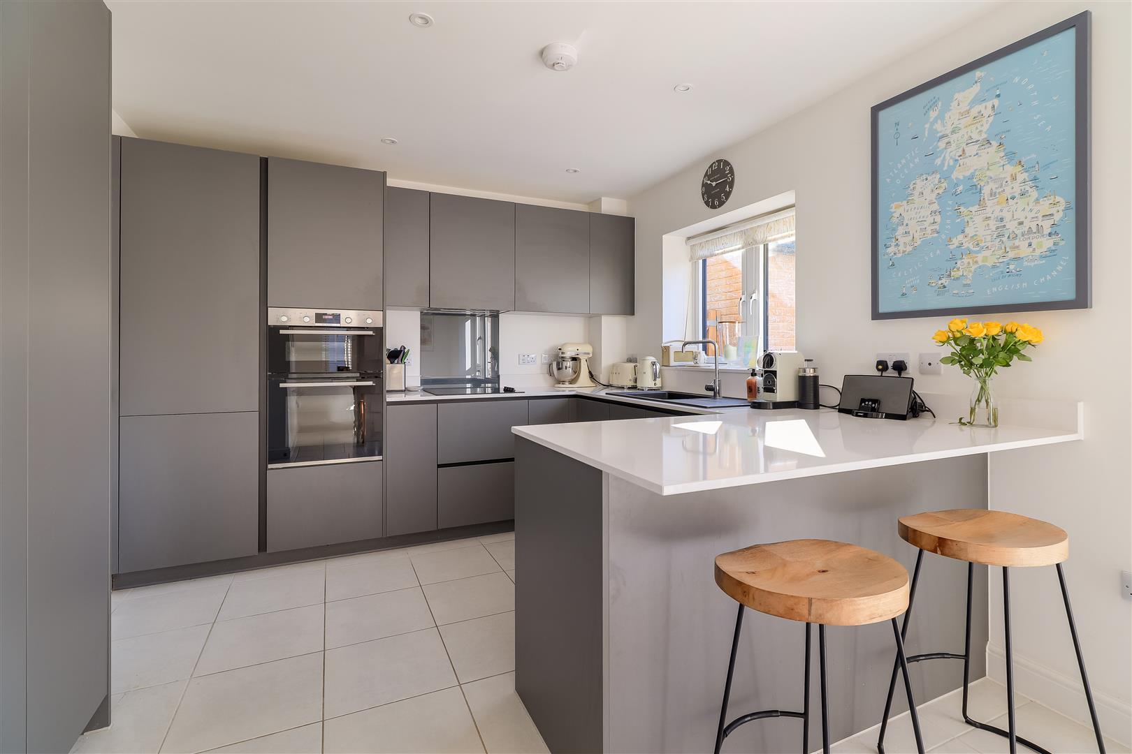 Outside, the house occupies a corner plot with a driveway providing parking for 3 cars charging point, side gate. Single garage. Rear garden laid to lawn and borders, paved terrace, enclosed with a brick wall and timber fencing and a Home office.